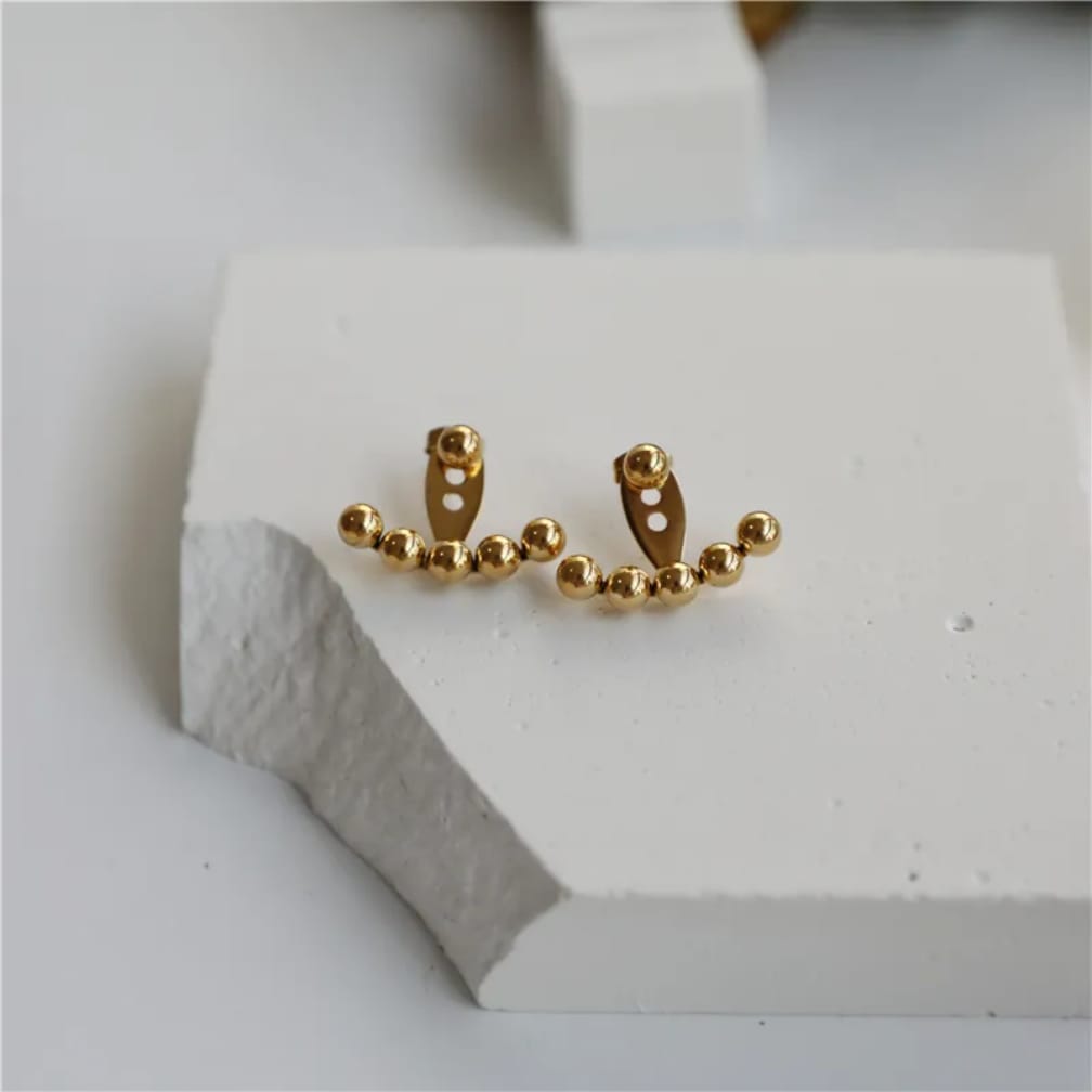 Minimalist Gold-Tone Beaded Ear Jackets – Trendy Front-Back Stud Earrings for Women
